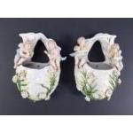 Two ANTIQUE AUSTRIAN ceramic wall flower holders, standing 22cm high approx. General good condition only minor damage which does not detract from these beautiful pieces!.
