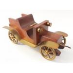 NICE QUALITY! An ornamental original teak desk vintage style car with moving brass wheels and brass trim L20xH10cD11cm approx