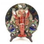 A highly decorative PALISSY MAJOLICA lobster wall plate with lifelike lobster and display stand. 30cm diameter approx