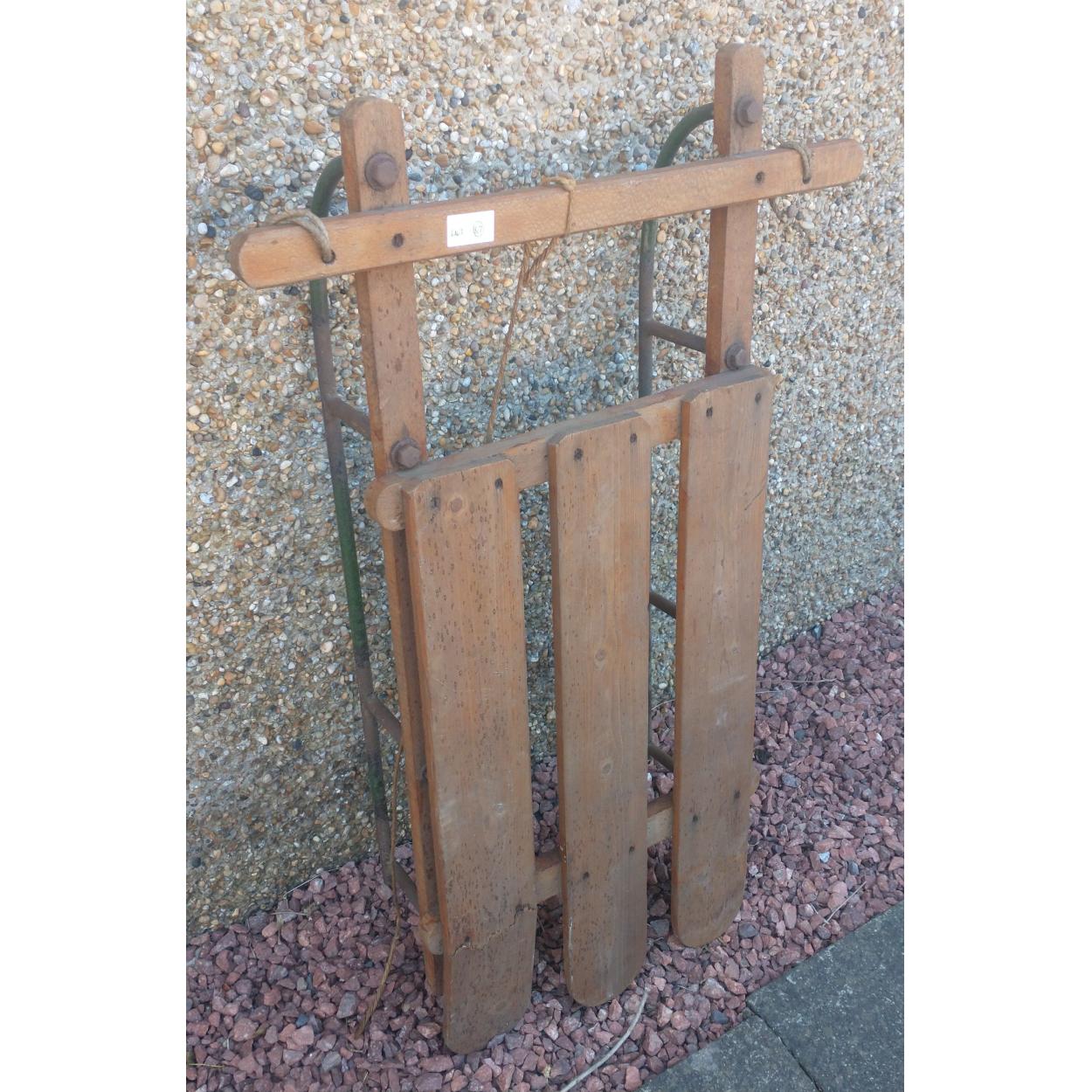 VINTAGE!! DEFINITELY A GRANNY BOUGHT JENNERS OF EDINBURGH( a guess) wooden super fast wooden topped sledge with tubular steel runners - one of the top planks is cracked at the end and requires a light repair!