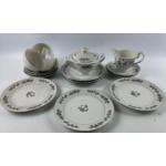 Part FINE SEYEI CHINA tea service from Nagoya, Japan to include 6 side plates, 5 saucers, 3 teacups, 1 covered sugar bowl and 1 milk jug.