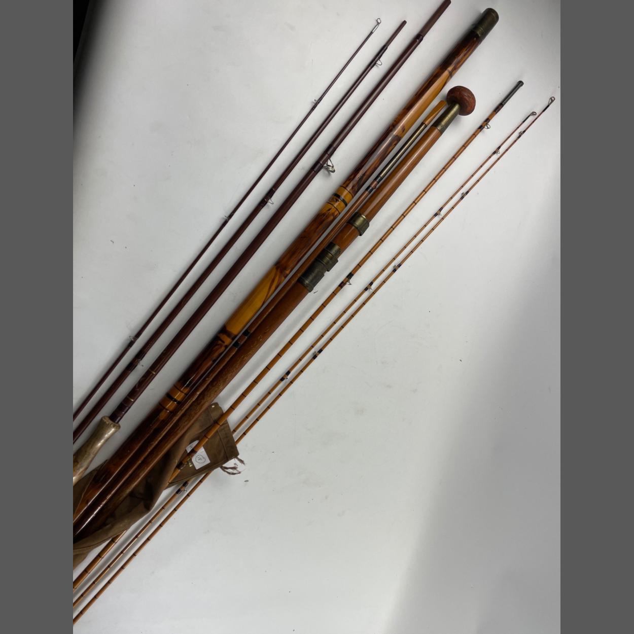 BRUCE & WALKER fibreglass Loch LLV #6 line 10' 3 piece fly rod in original bag plus a late Victorian C FARLOW & CO, MAKERS, 191 Strand London, 14 1/2' GREENHEART SALMON fly rod, 3 piece and spare tip, original screw top bamboo tip carrier tube, original rod bungs and a 1919 HARDY PALONAKA split cane THE PERFECTION 2 piece 9 1/4' fly rod plus spare tip serial number B23188, original bag (re-tipped).