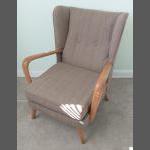 ERCOL inspired ( think ERCOL?) late c1960's armchair displaying beautiful PATINA wooden arms - 40cm top of seat pad to floor!