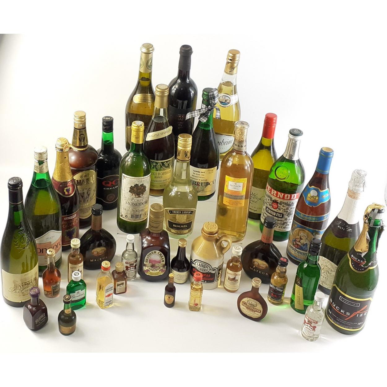 A mixed lot of wine to include Lambrusco, Liebfraumilch, Pernod, plus miniatures and others