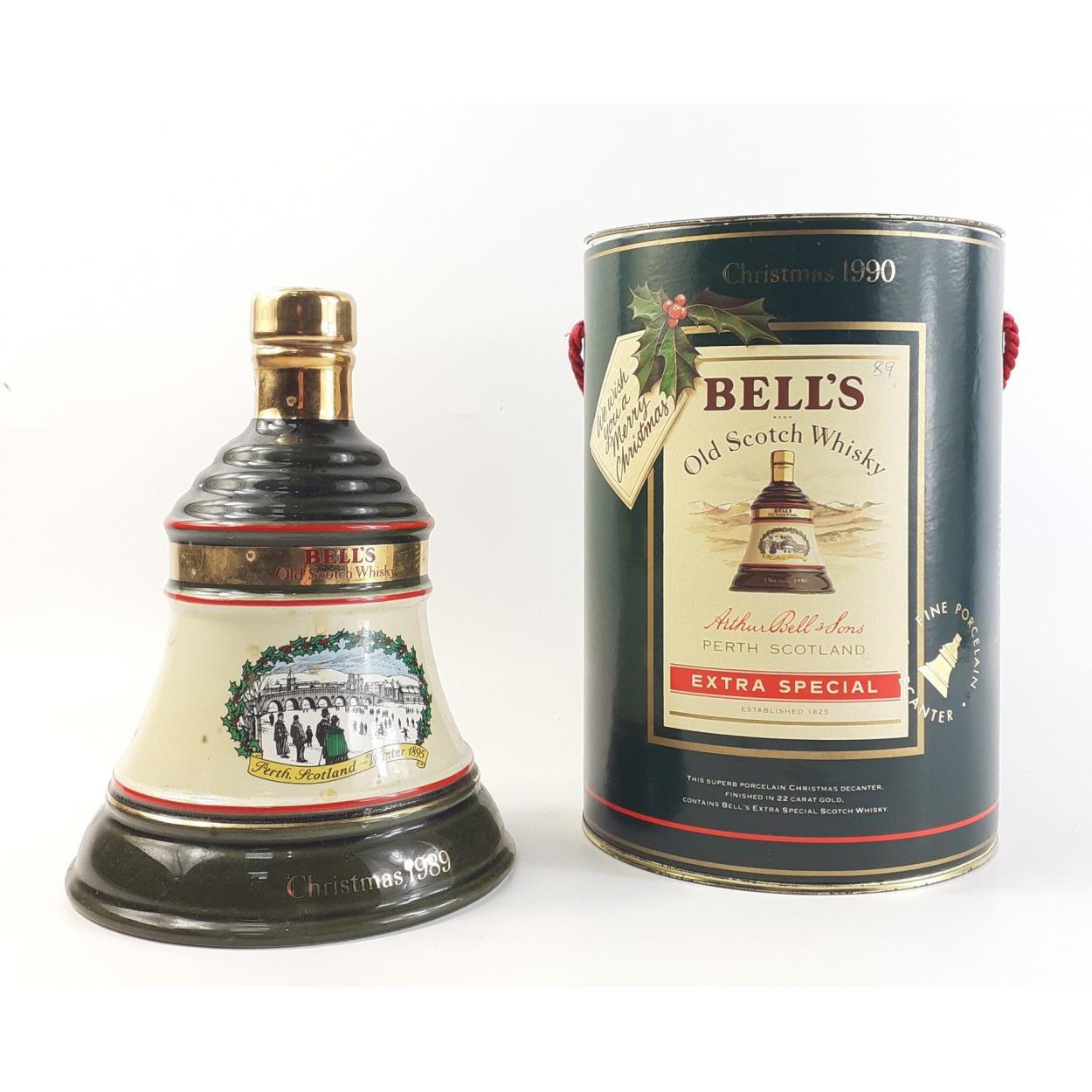 A BELL'S 1989 Christmas bell decanter with 75cl contents of blended Scotch whisky. Comes with original presentation tube
