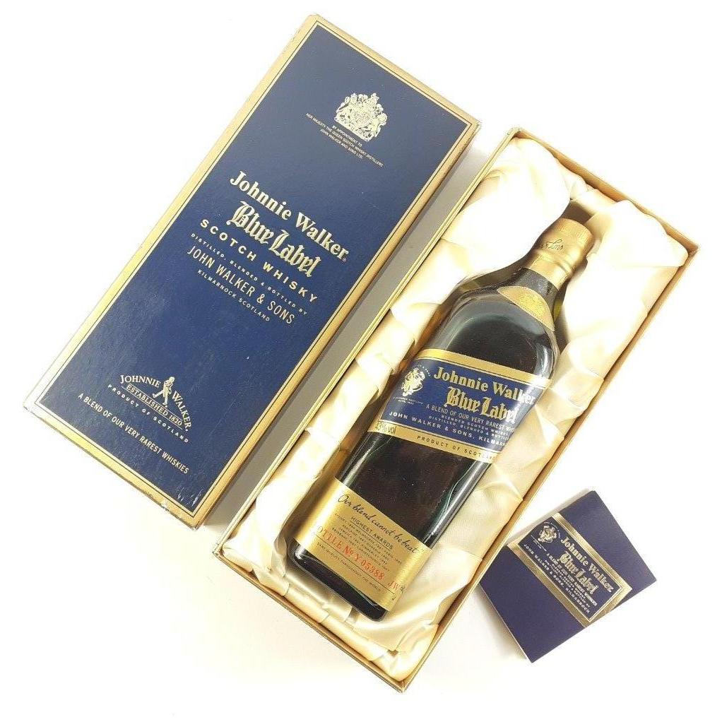 A boxed 1 litre bottle of JOHNNIE WALKER Blue Label whisky bottle number Y05388JW