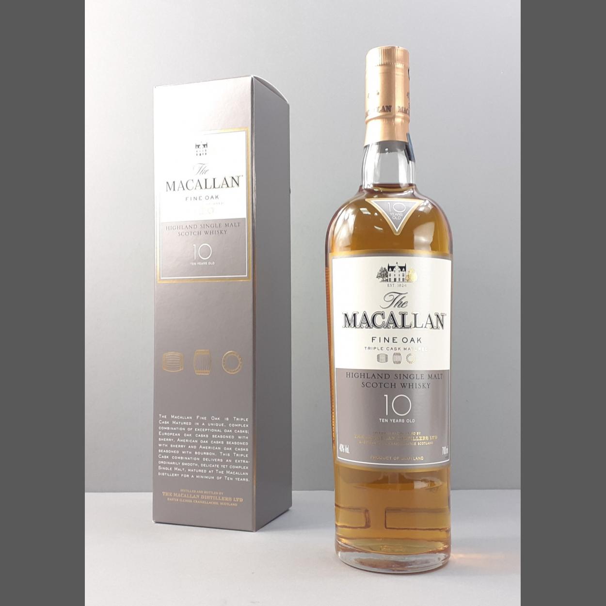 A boxed 70cl bottle of ten year old THE MACALLAN FINE OAK single malt whisky