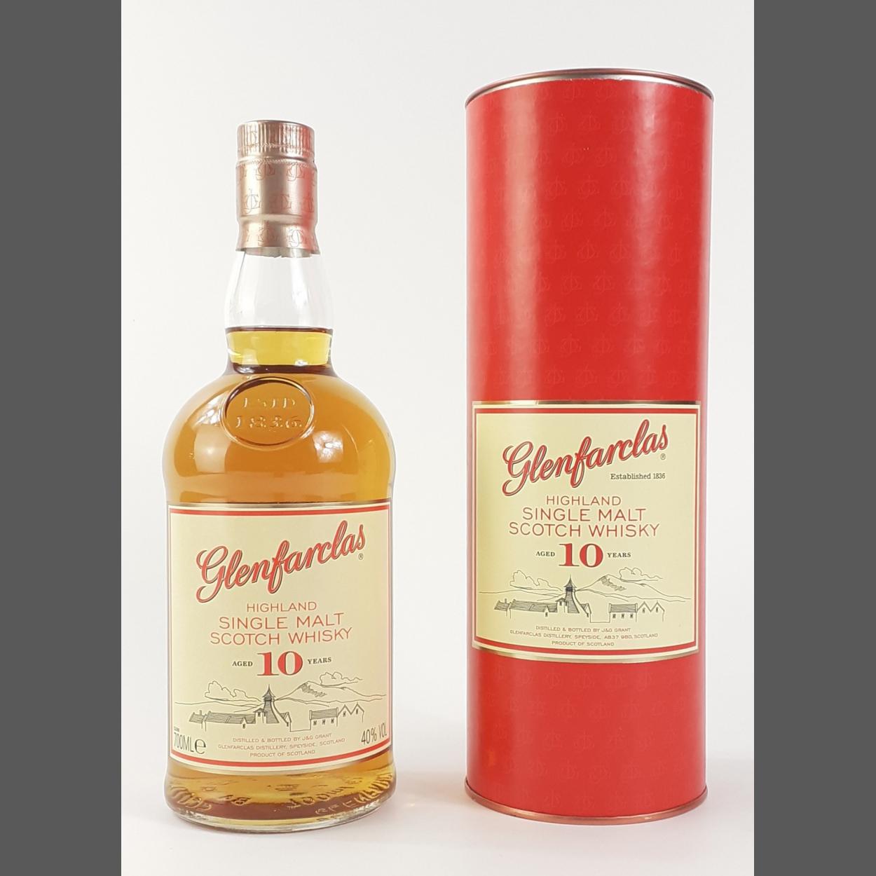 A bottle of 10 year old GLENFARCLAS Single Malt Scotch Whisky in presentation tube. 70cl