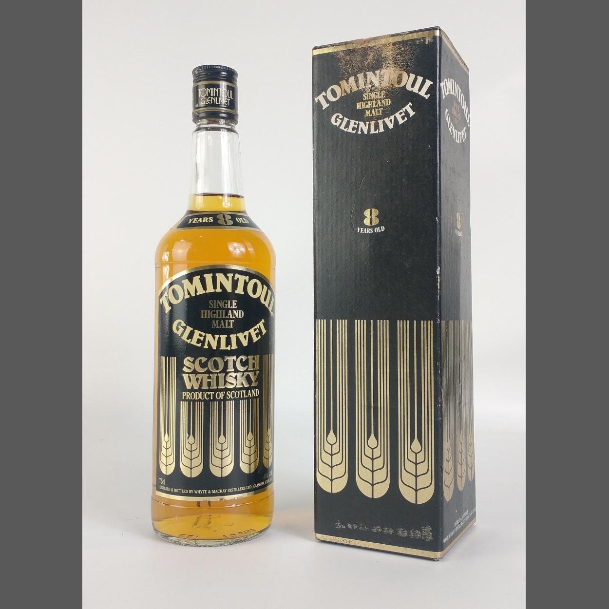 A TOMINTOUL GLENLIVET single Highland malt, 8 year old. Box with wear. 75cl