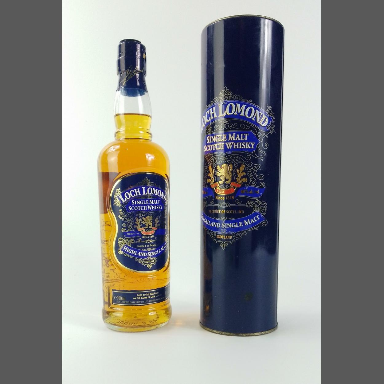 A 700ml bottle of LOCH LOMOND single malt whisky in a tin