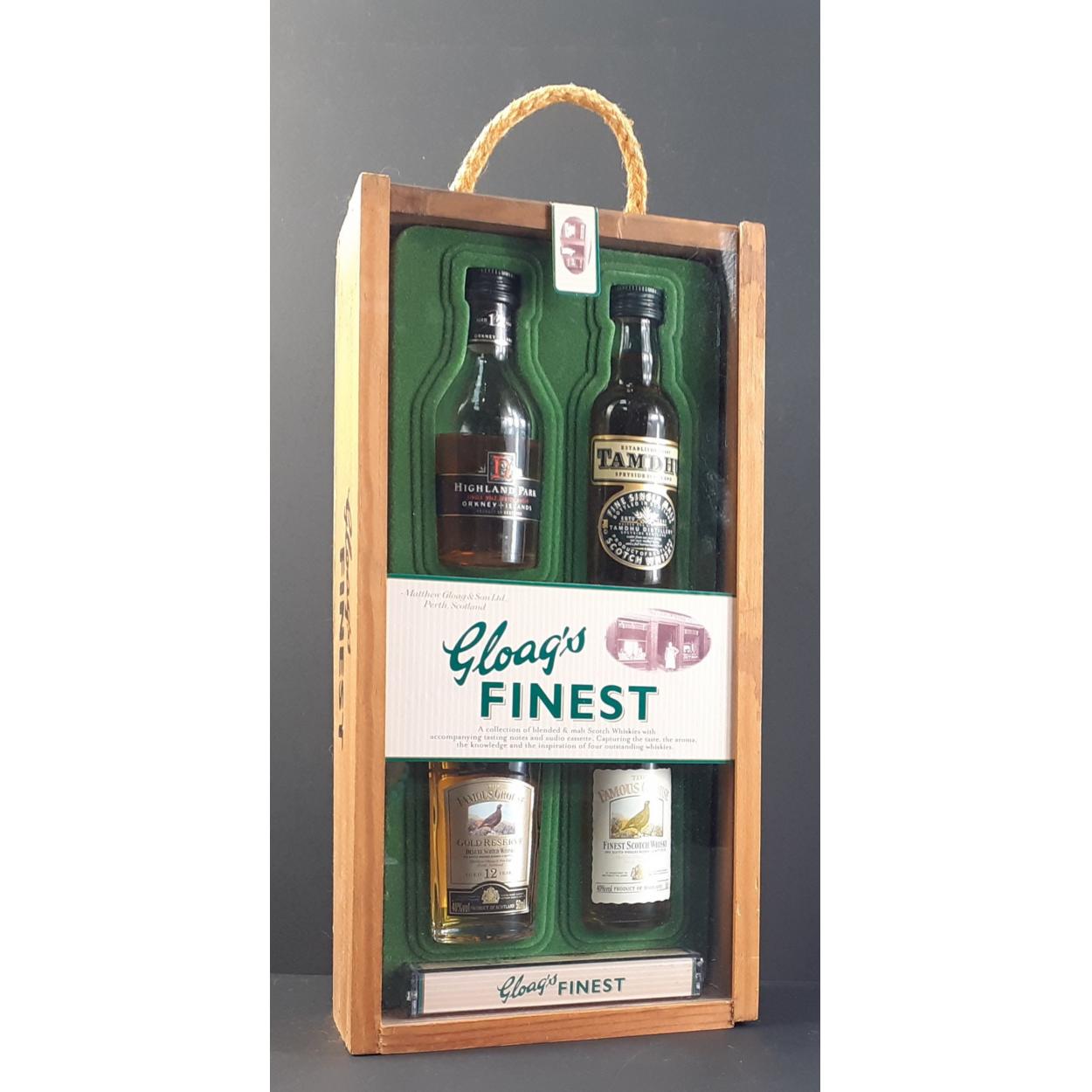 GLOAG'S Finest four bottle boxed miniature collection comprising Grouse Gold Reserve, Grouse, Tamdhu, Highland Park.