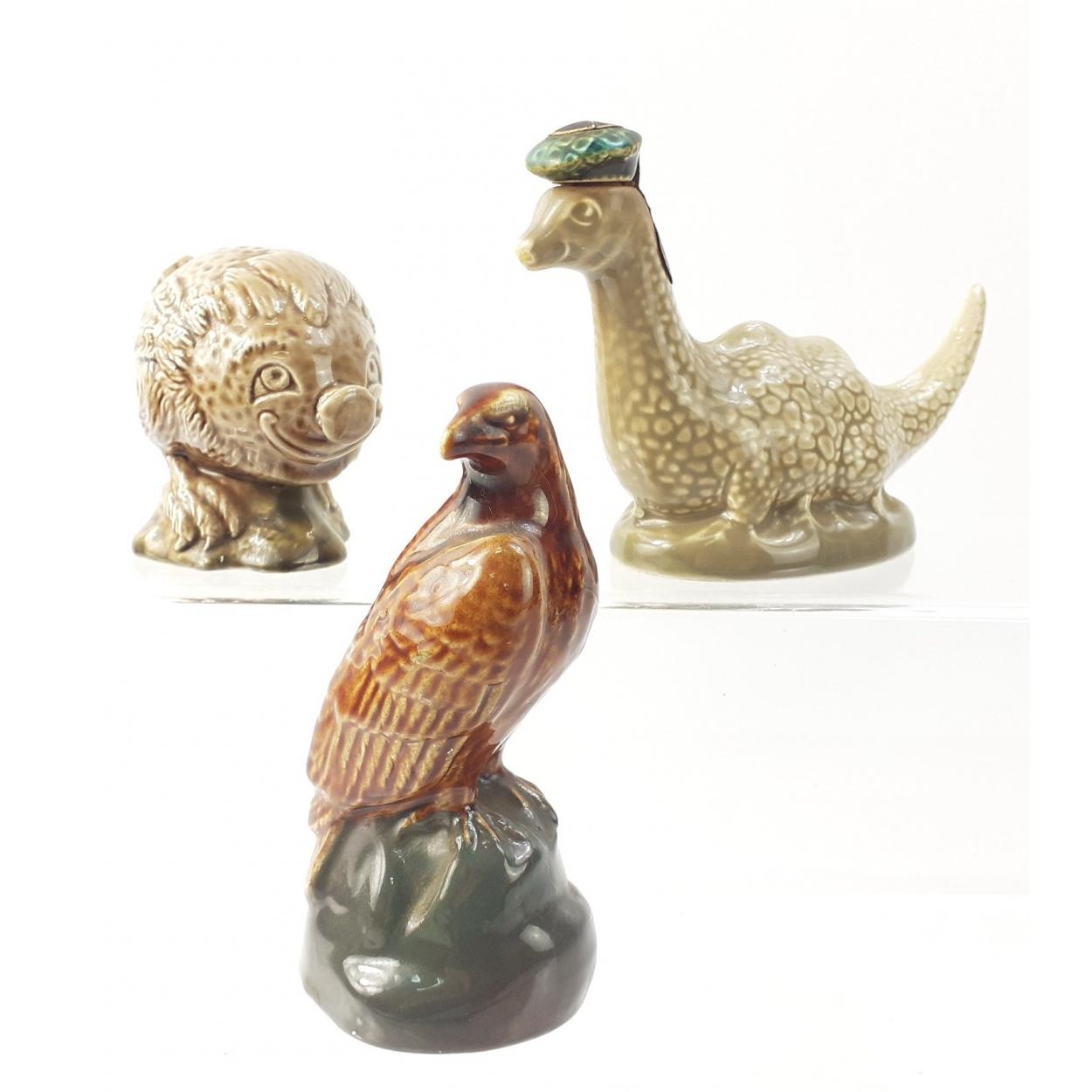 By BESWICK -A miniature BENEAGLES flying haggis, BENEAGLES Loch Ness Monster and a BENEAGLES eagle. All unopened but subject to evaporation