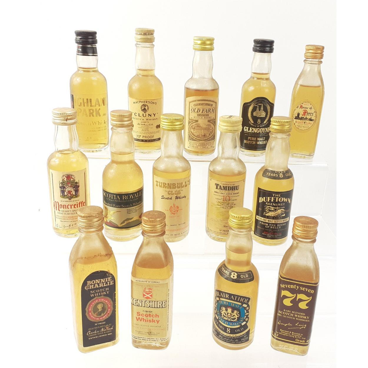A small selection of 14 interesting whisky miniatures to include McPhersons Cluny, Turnbull's Club, Blair Athol, Moncreiffe, Tamdhu etc.