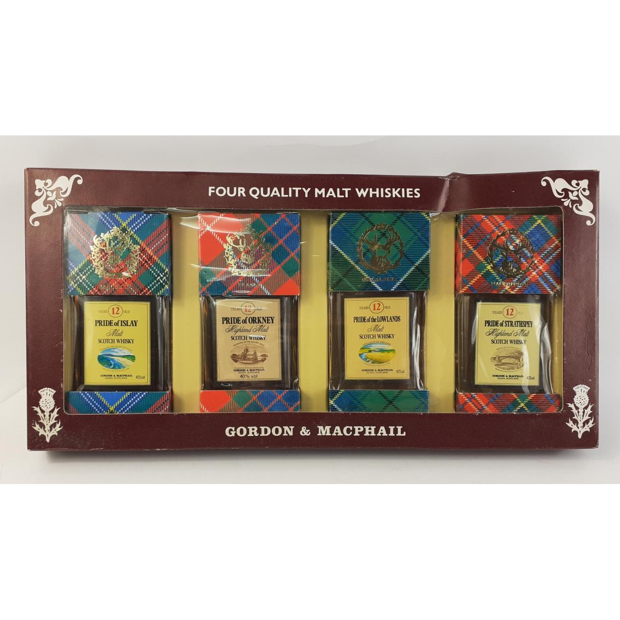 GORDON & MACPAIL boxed set of 4 miniature malt whiskies to include PRIDE OF ISLAY, PRIDE OF ORKNEY, PRIDE OF THE LOWLANDS, AND PRIDE OF STRATHSPEY