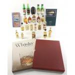 A box of mixed whisky miniatures to include 13th COMMONWEALTH GAMES Edinburgh, CITY OF ABERDEEN, WWW GRENDEL'S 12 years old, a tiny matchbox with an even tinier bottle of WHITE & MACKAY Special Whisky. Plus Wallace Milroy's Malt Whisky Almanac, The World Book of Whisky by Brian Murphy in slip case and a VHS cassette of A Journey of Discovery