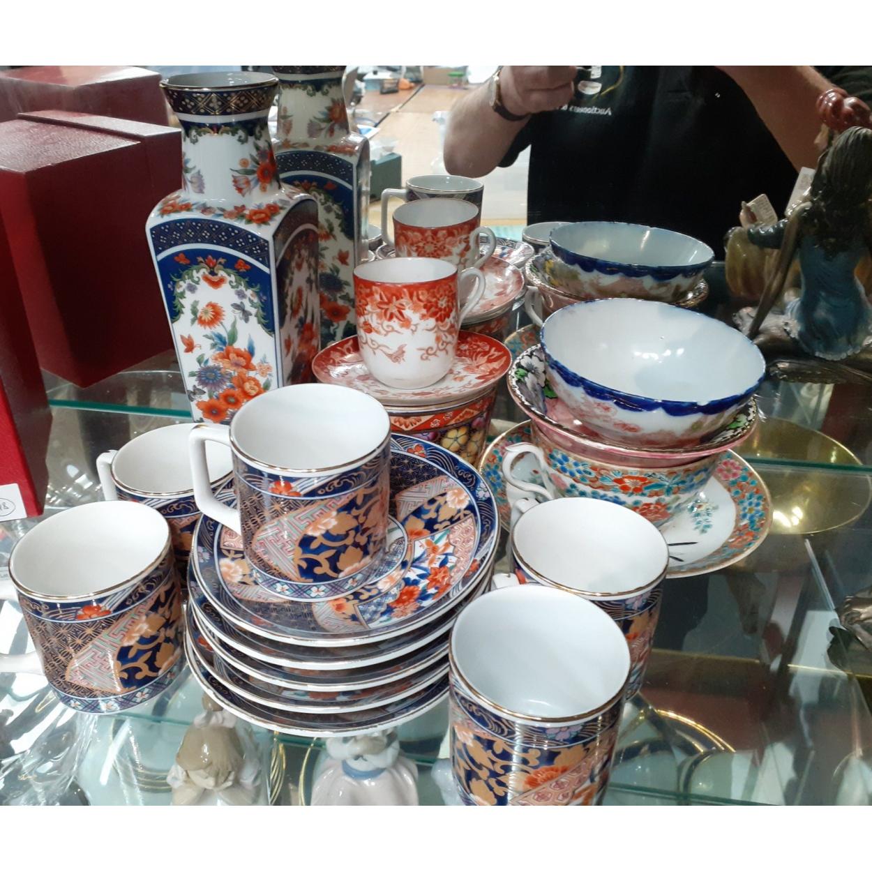 A small collection of rather attractive oriental ceramics to include five matching coffee cans and saucers, a pretty 20cm vase, various other ceramic pieces in good order and a Maling bowl.