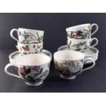 PORTMEIRION Ceramics - A set of Botanic Gardens six teacups with various patterns one with broken handle.