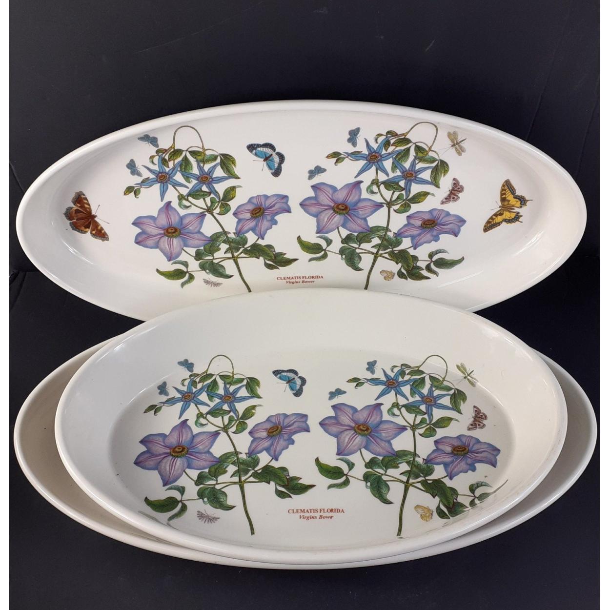 PORTMEIRION Ceramics - A collection of CLEMATIS FLORIDA to include two matching 48cm wide platters, a large oval oven dish 40cm across. All three in good order.