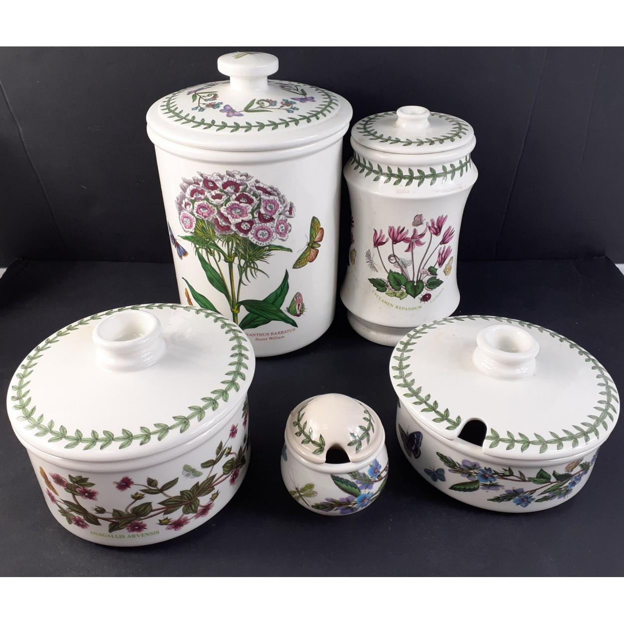 PORTMEIRION Ceramics - A collection of five storage ware largest DIANTHUS BARBATUS 22 high. Largest with seal, all in good condition.