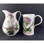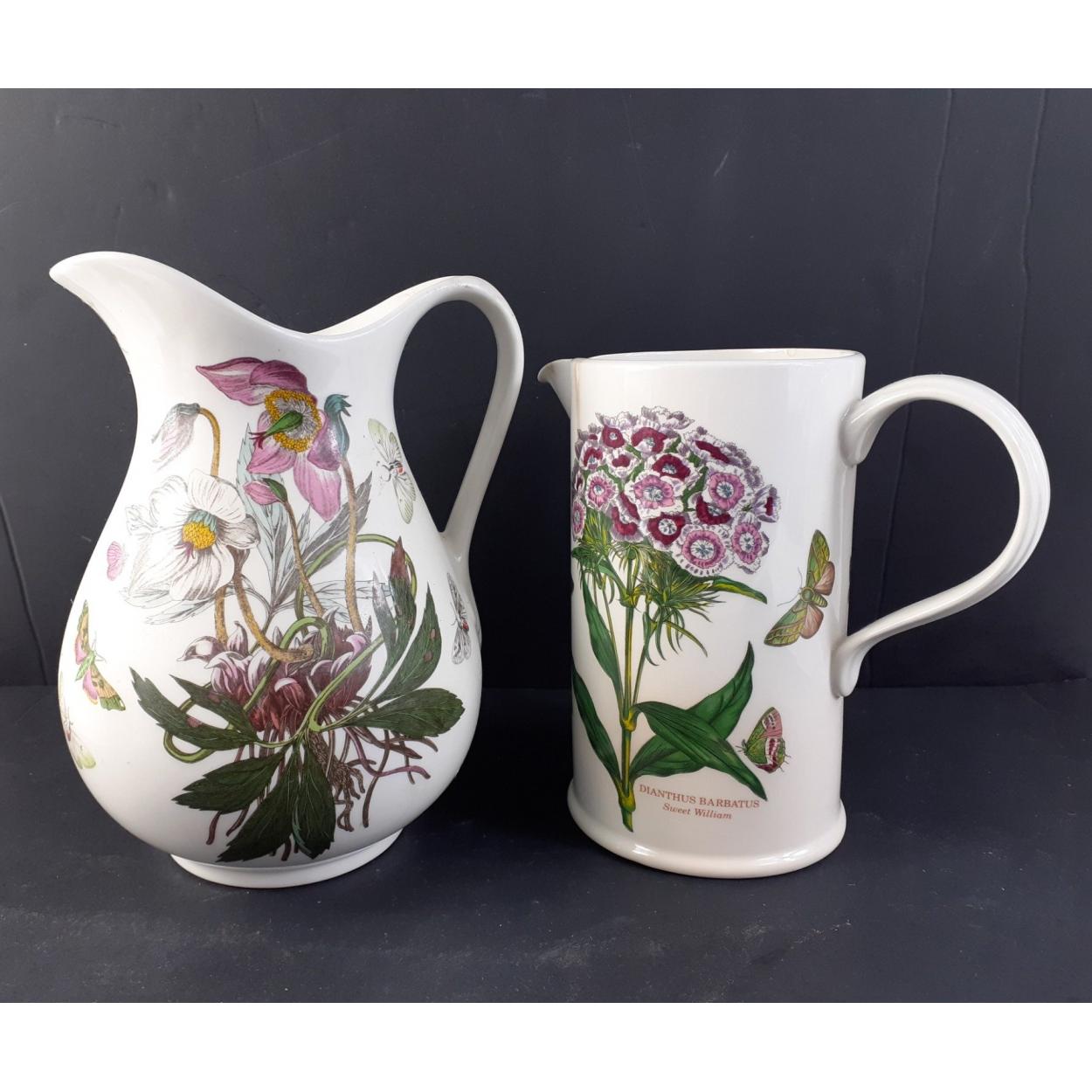 PORTMEIRION Ceramics - A collection of four Botanic Gardens pattern jugs and ewers, the largest standing 22cm. Various designs. Tankard with chip to spout, bulbous jug with damage to handle.