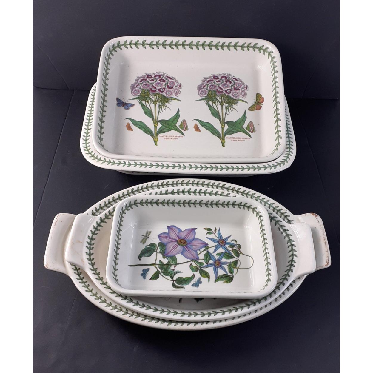 PORTMEIRION Ceramics - A collection of oven to table dishware to include three rectangular shaped dishes the largest 35cm in SWEET PEA pattern and others with various designs. Signs of use but no damage. Five pieces in total.