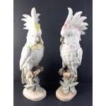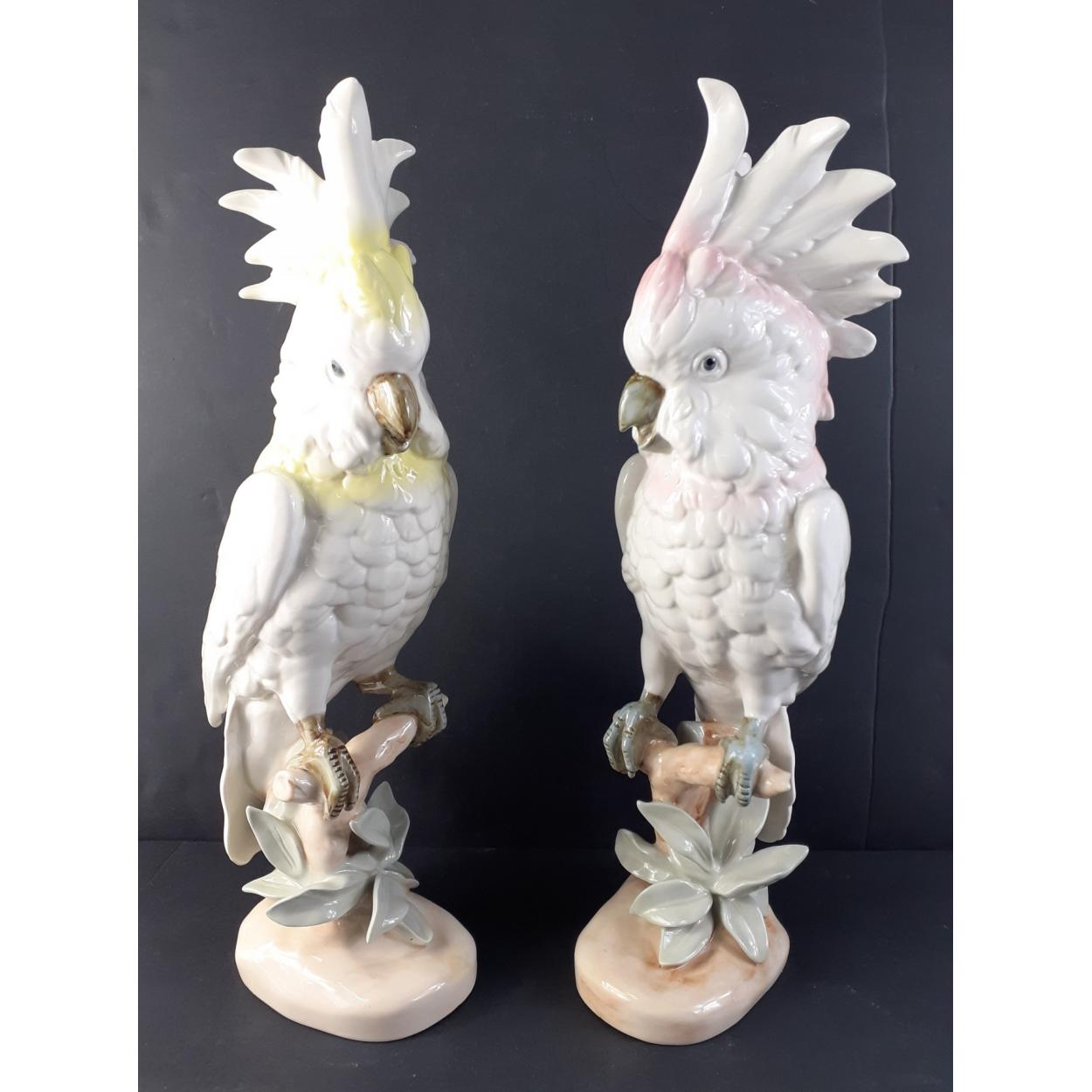A pair of impressive ROYAL DUX Bohemian cockatoos - one pink and one yellow each standing approx 40cm tall. No visible damage