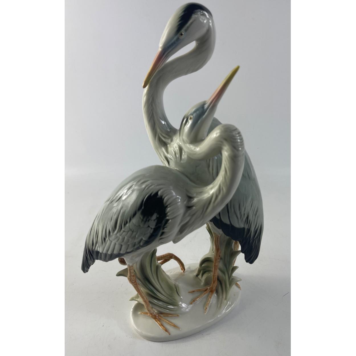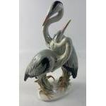 KARL ENS vintage German Porcelaine ornamental ceramic pair of grey HERONS - stamped to base - dimensions 33cm tall x 20cm width approx
