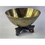 ORIENTAL brass bowl with a hand carved stand - dimensions 20cm diameter x 9cm(bowl only)
