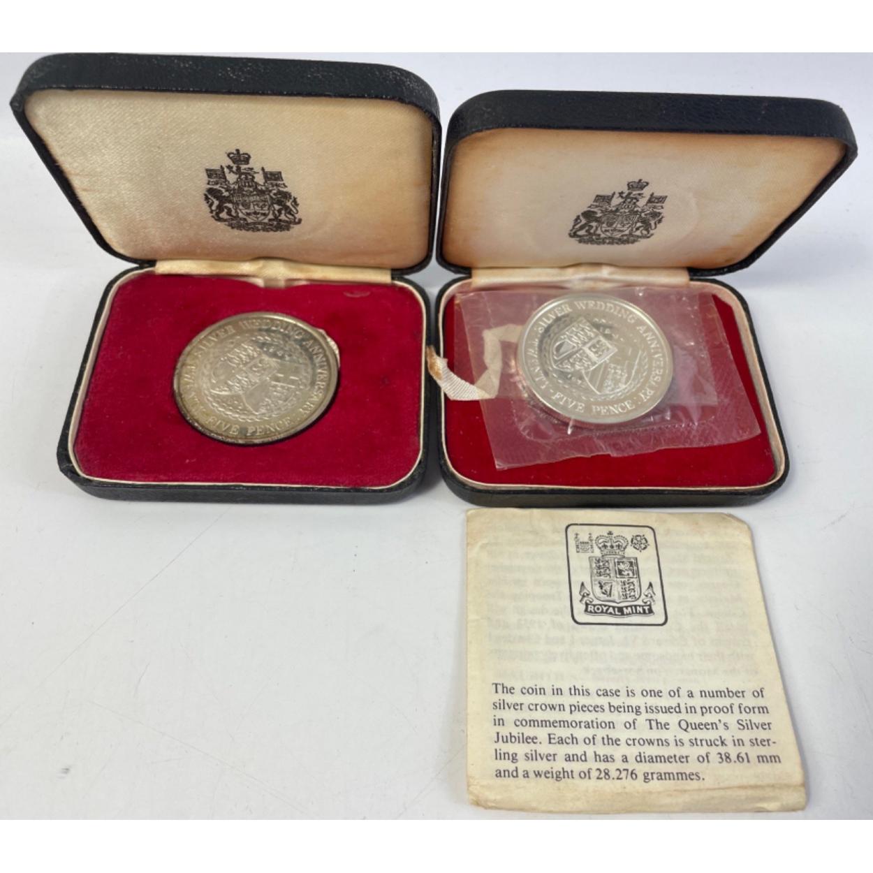 A silver jubilee ISLE of MAN encapsulated one crown coin with presentation box and a QEII silver jubilee crown, encapsulated and boxed