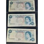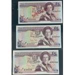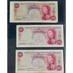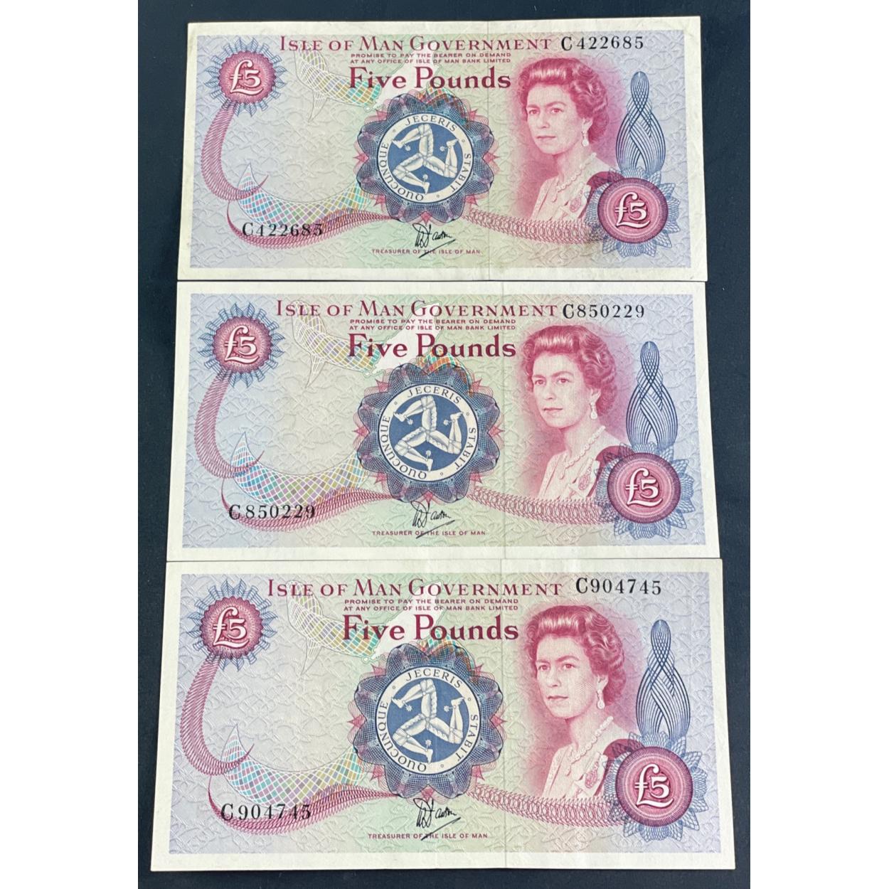 ISLE of MAN 1980s £5 Banknote collection of three Dawson £5 five Pound notes. All in nice uncirculated condition.