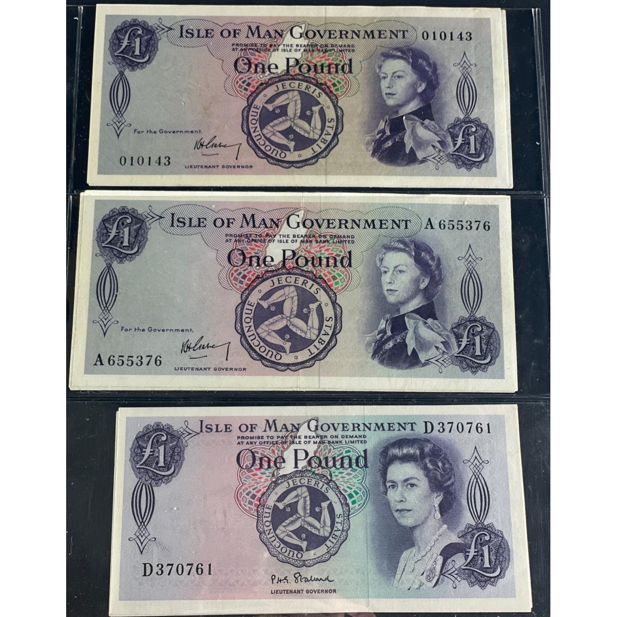 ISLE OF MAN £1 Banknote selection. Ten notes in total to include a run of three AA Prefix. Notes are good with light wear