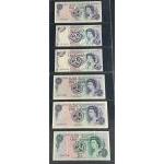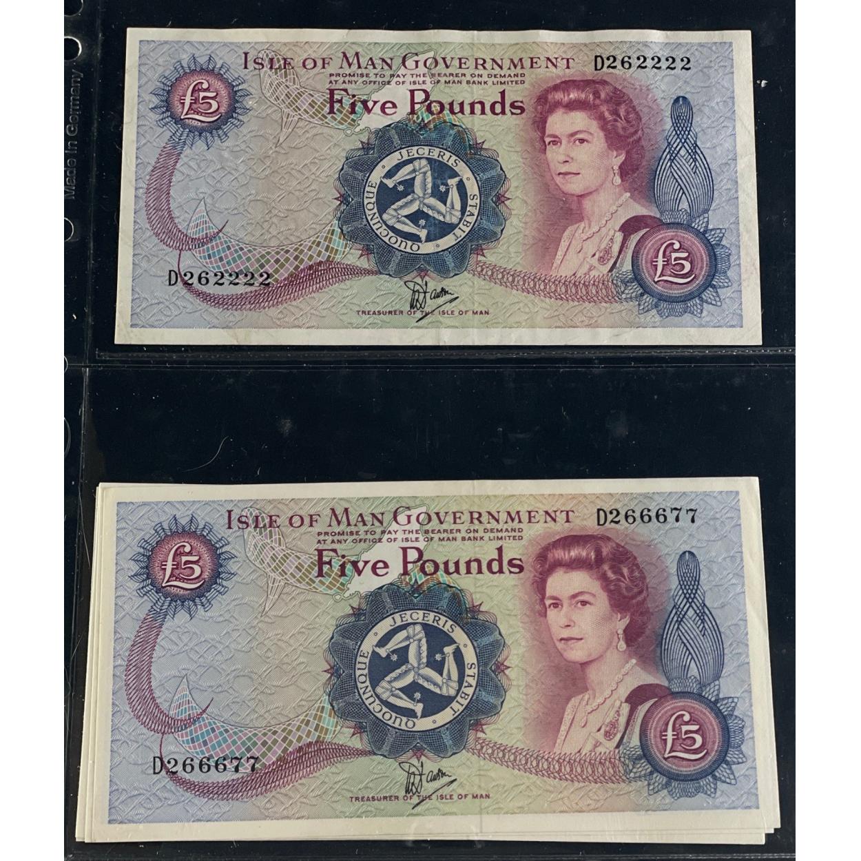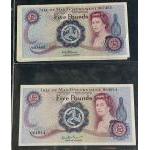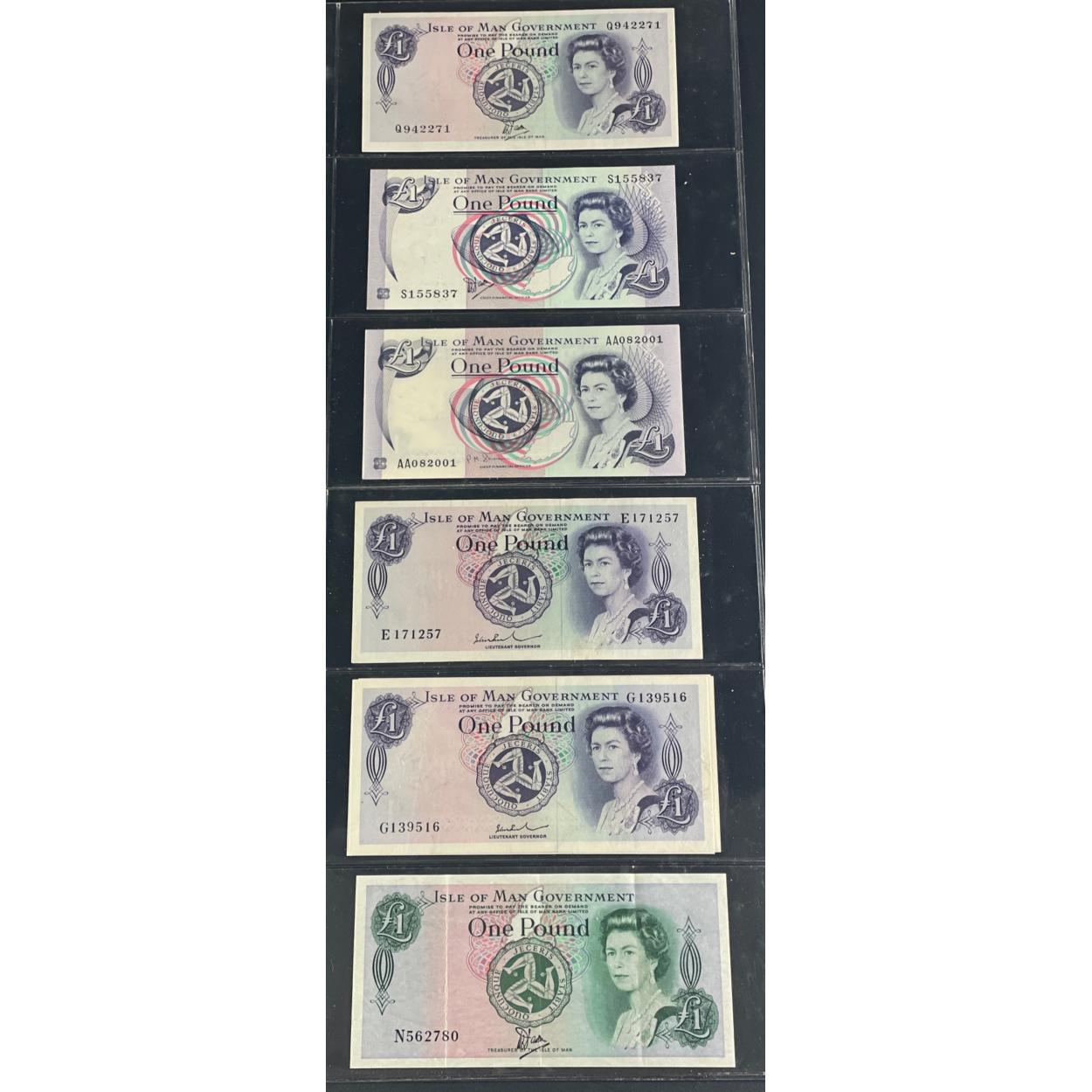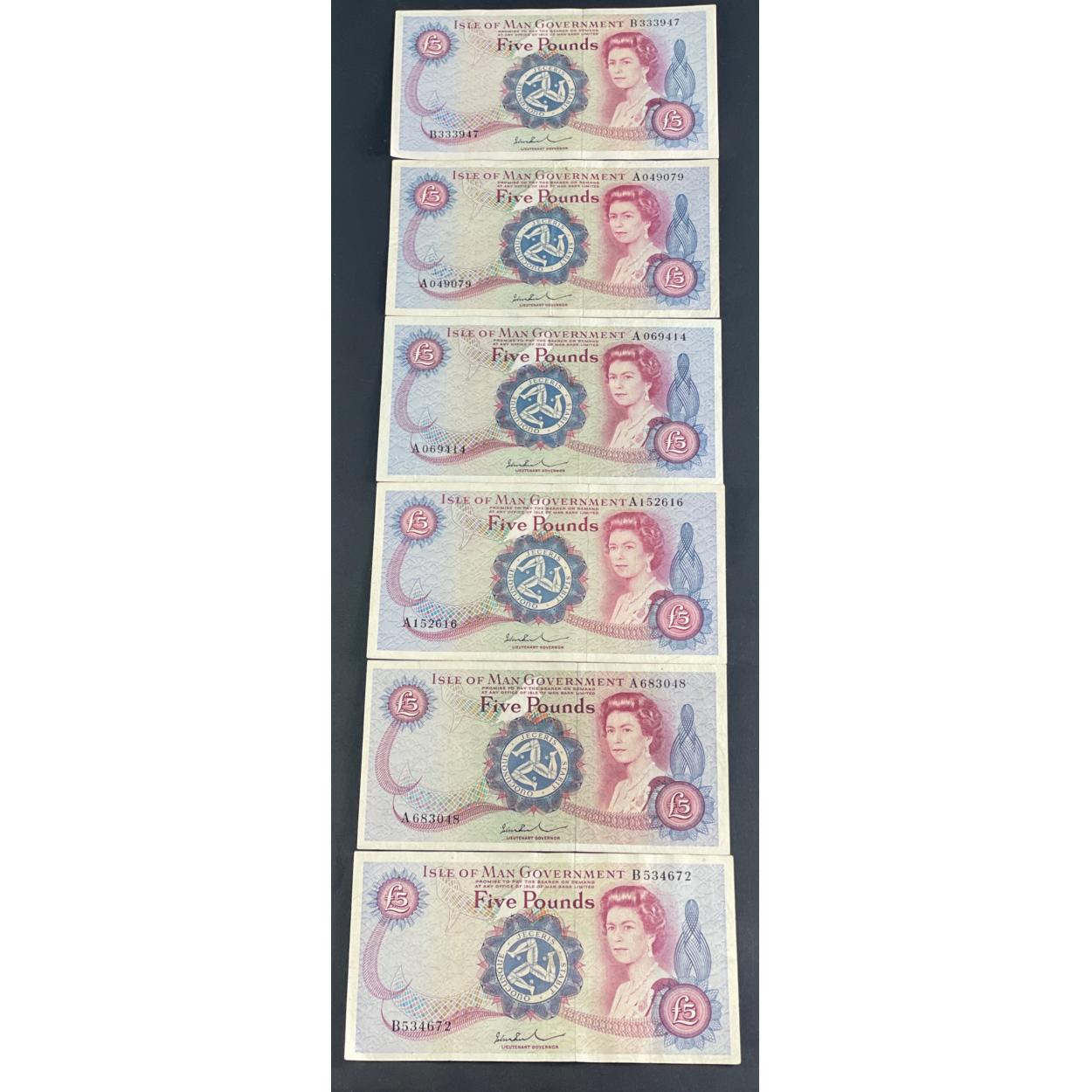 ISLE of MAN 1970s £5 Banknote collection of six John Paul £5 five Pound notes. All in nice uncirculated condition.