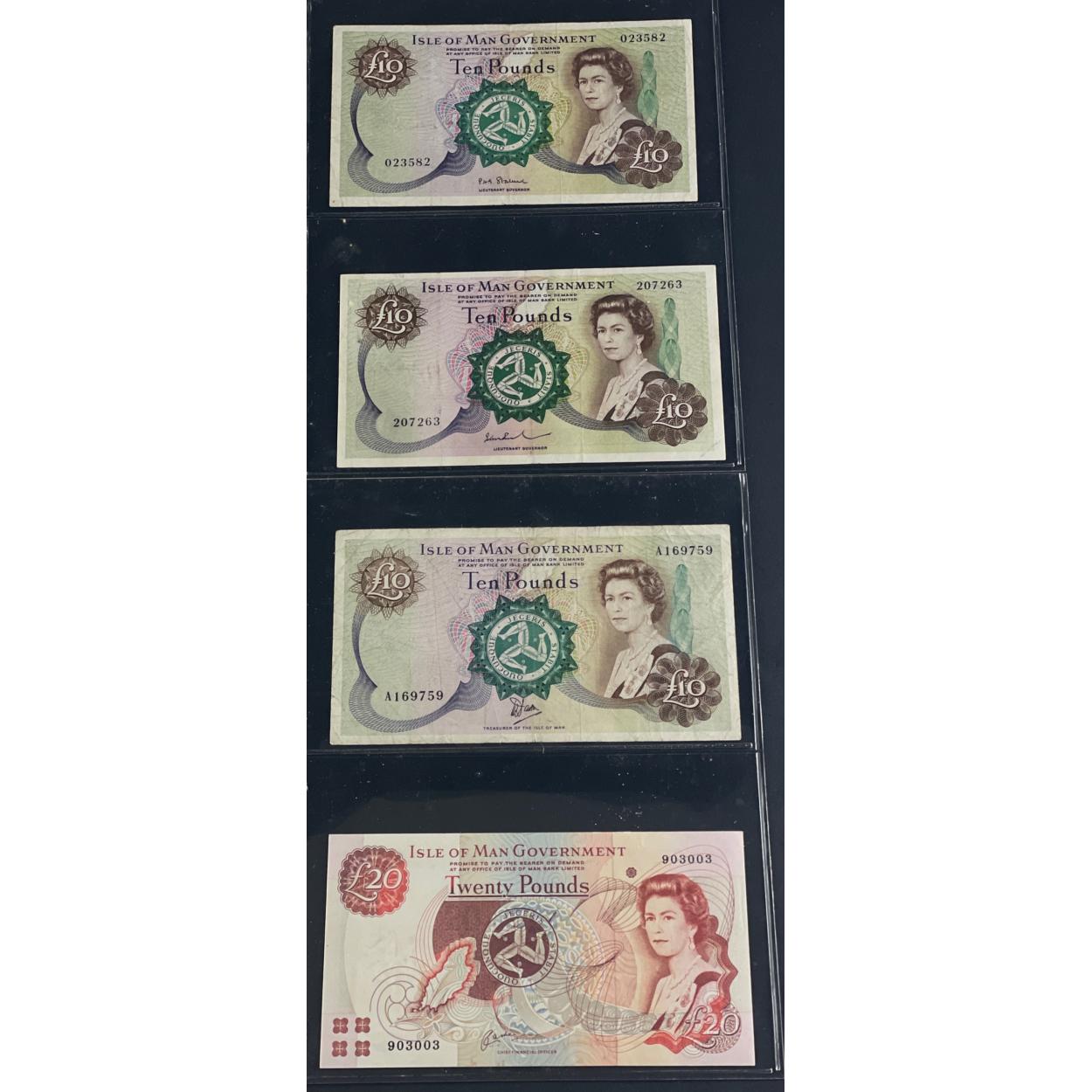 Isle of Man Banknotes High Values to include 3x £10 notes of Stallard John Paul and Dawson and a £20 Cashen. All four notes are in good high grades