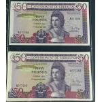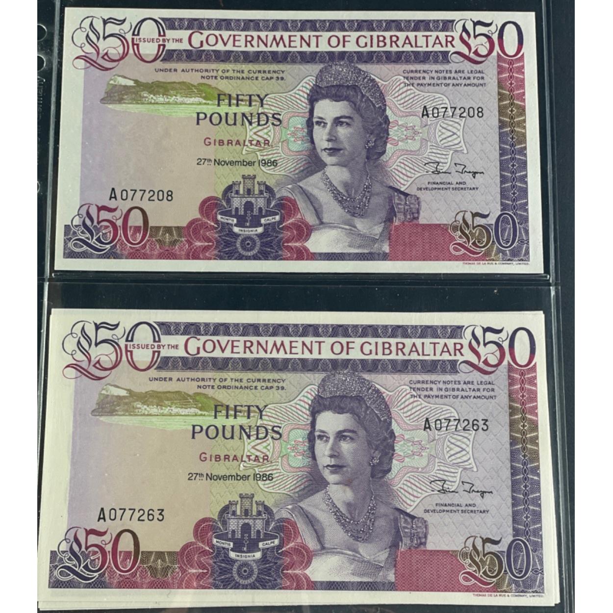 GIBRALTAR Banknotes A sequential series of three 1986 'A' Prefix £50 notes and one other 'A' note. All notes in crisp UNC condition.