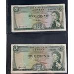 The STATES of JERSEY Banknotes. Five £1 One Pound notes differing prefixes in good collectible grades