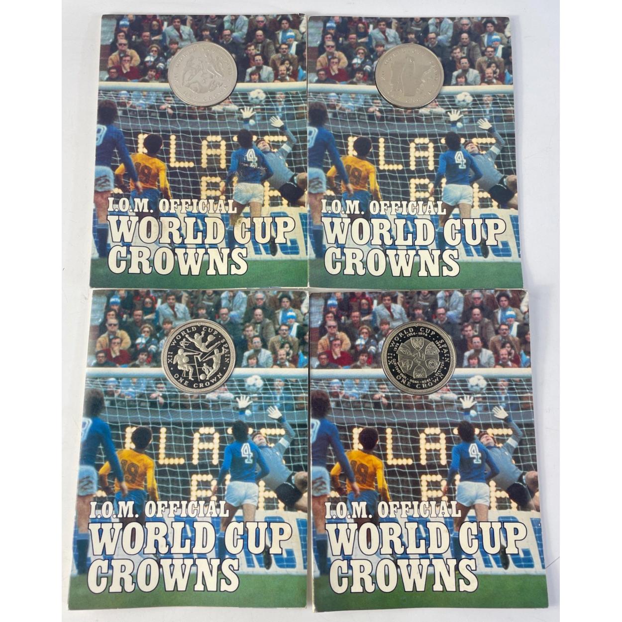 Four ISLE OF MAN official world cup crowns (Spain) 1982, in presentation booklets. One booklet has some damage but all coins in proof condition