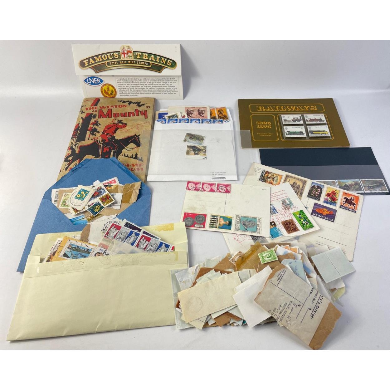 Mixed stamp collection to include Post Office Railways set presentation pack, a Mounty Stamp Album and assorted loose stamps. A nice little lot.