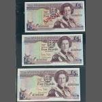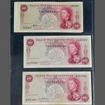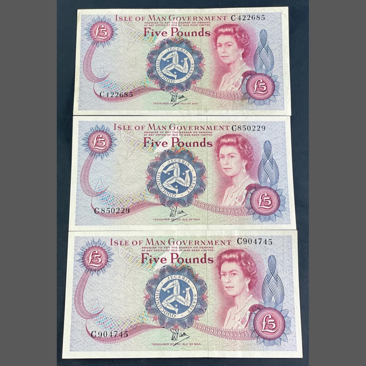 ISLE of MAN 1980s £5 Banknote collection of three Dawson £5 five Pound notes. All in nice uncirculated condition.
