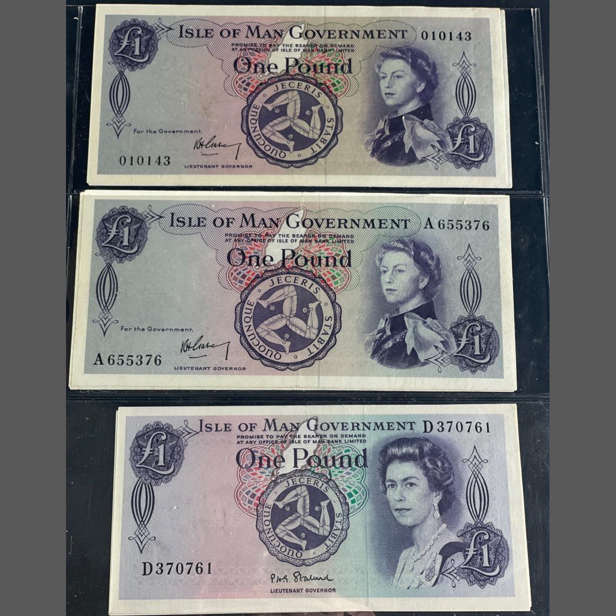 ISLE OF MAN £1 Banknote selection. Ten notes in total to include a run of three AA Prefix. Notes are good with light wear