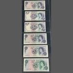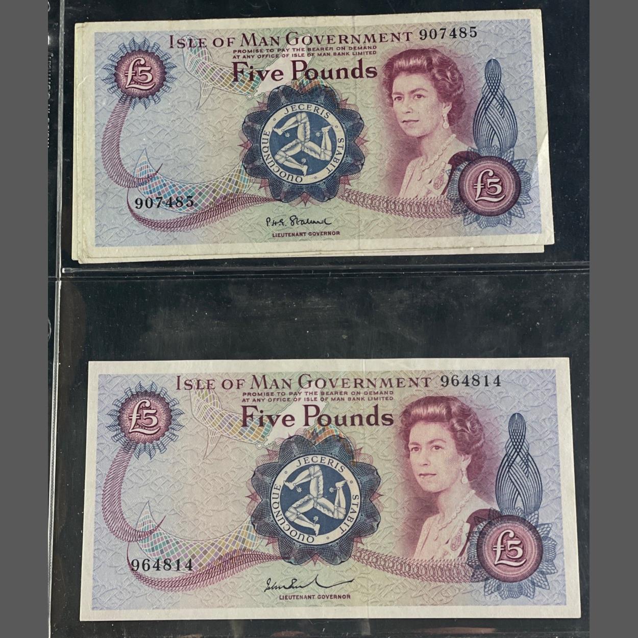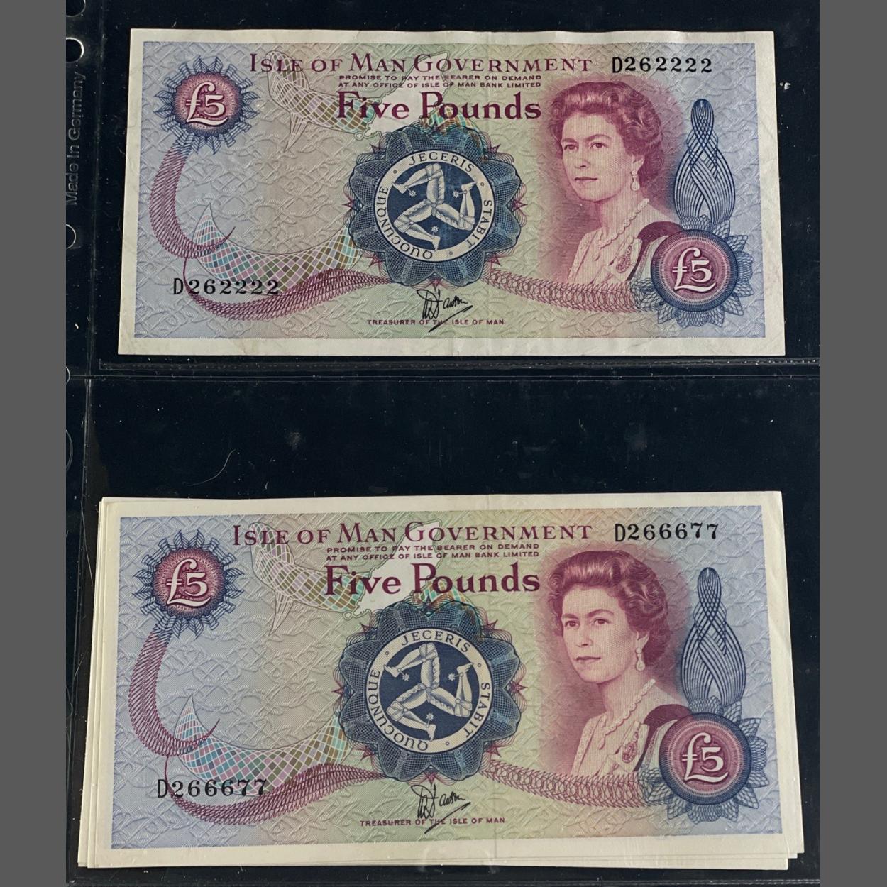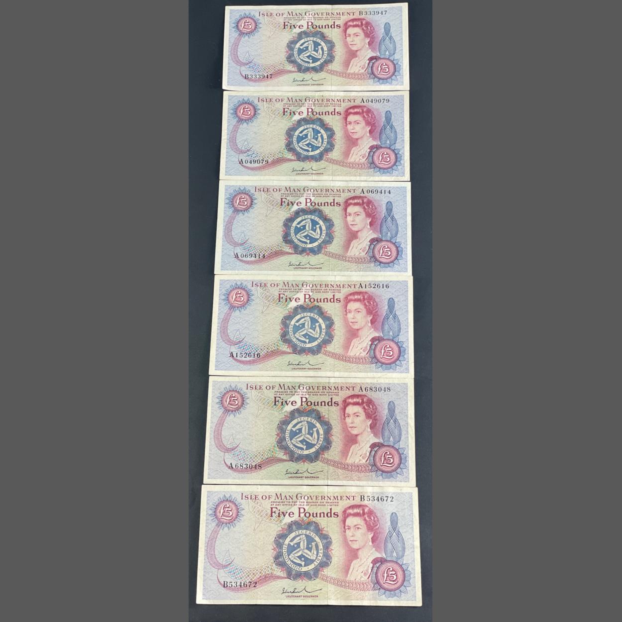 ISLE of MAN 1970s £5 Banknote collection of six John Paul £5 five Pound notes. All in nice uncirculated condition.
