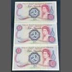 A history of the PROVINCIAL BANK OF IRELAND LIMITED five pound note - three notes starting with 5th January 1944, 5th June 1956 and 1st January 1977. All uncirculated condition