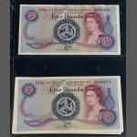 Two ULSTER BANK LIMITED five pound notes from 1st March 1976 and 25th November 2006.