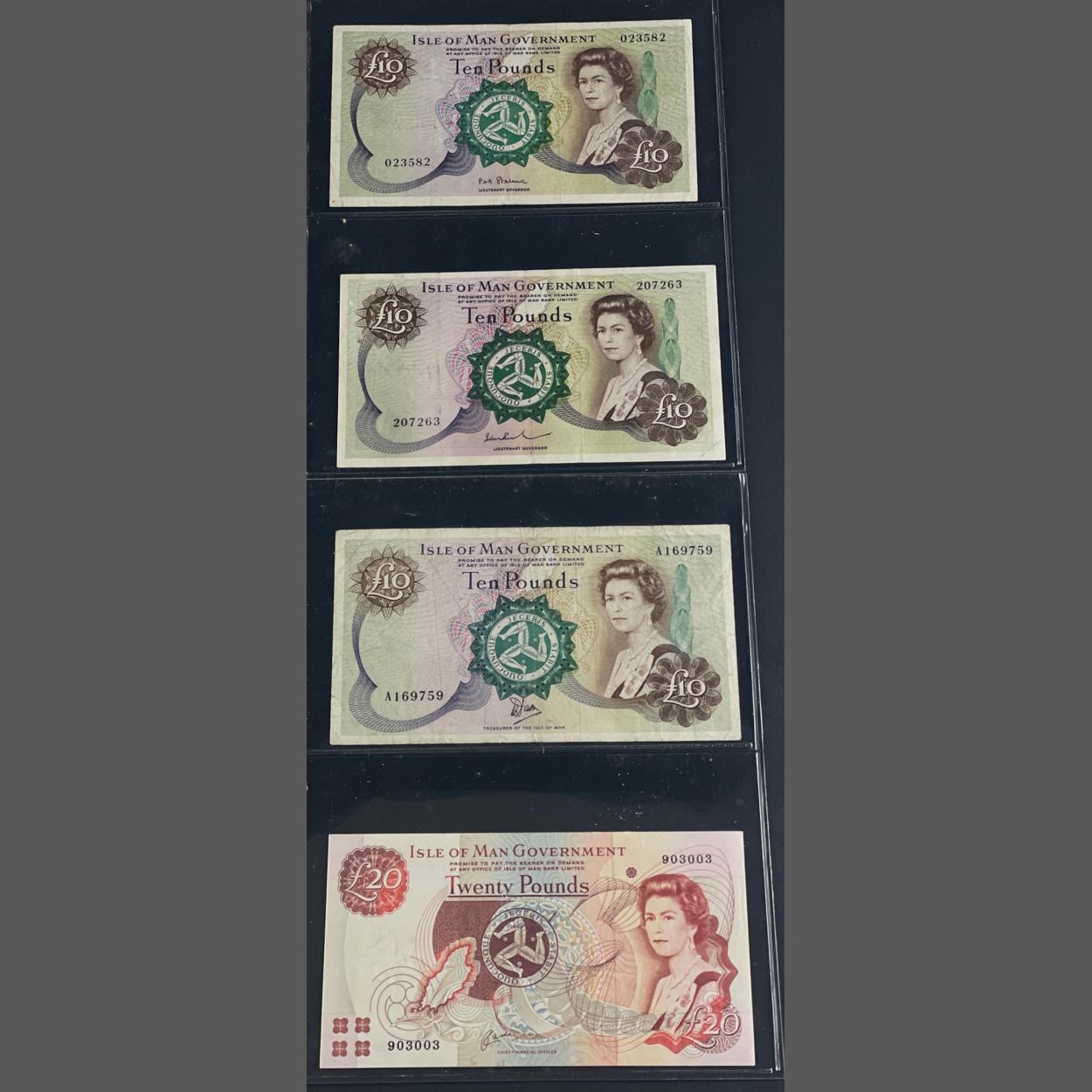 Isle of Man Banknotes High Values to include 3x £10 notes of Stallard John Paul and Dawson and a £20 Cashen. All four notes are in good high grades