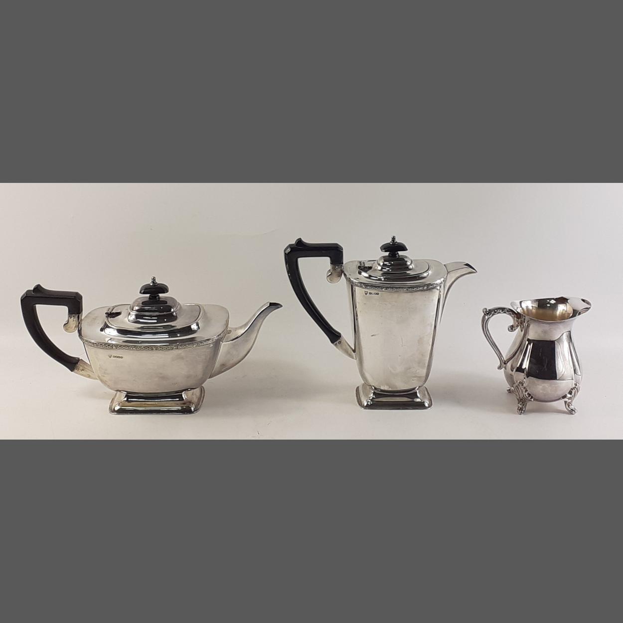 A quality EPNS tea service comprising teapot, coffee pot and cream jug. Coffee pot stands 20cm tall approx.
