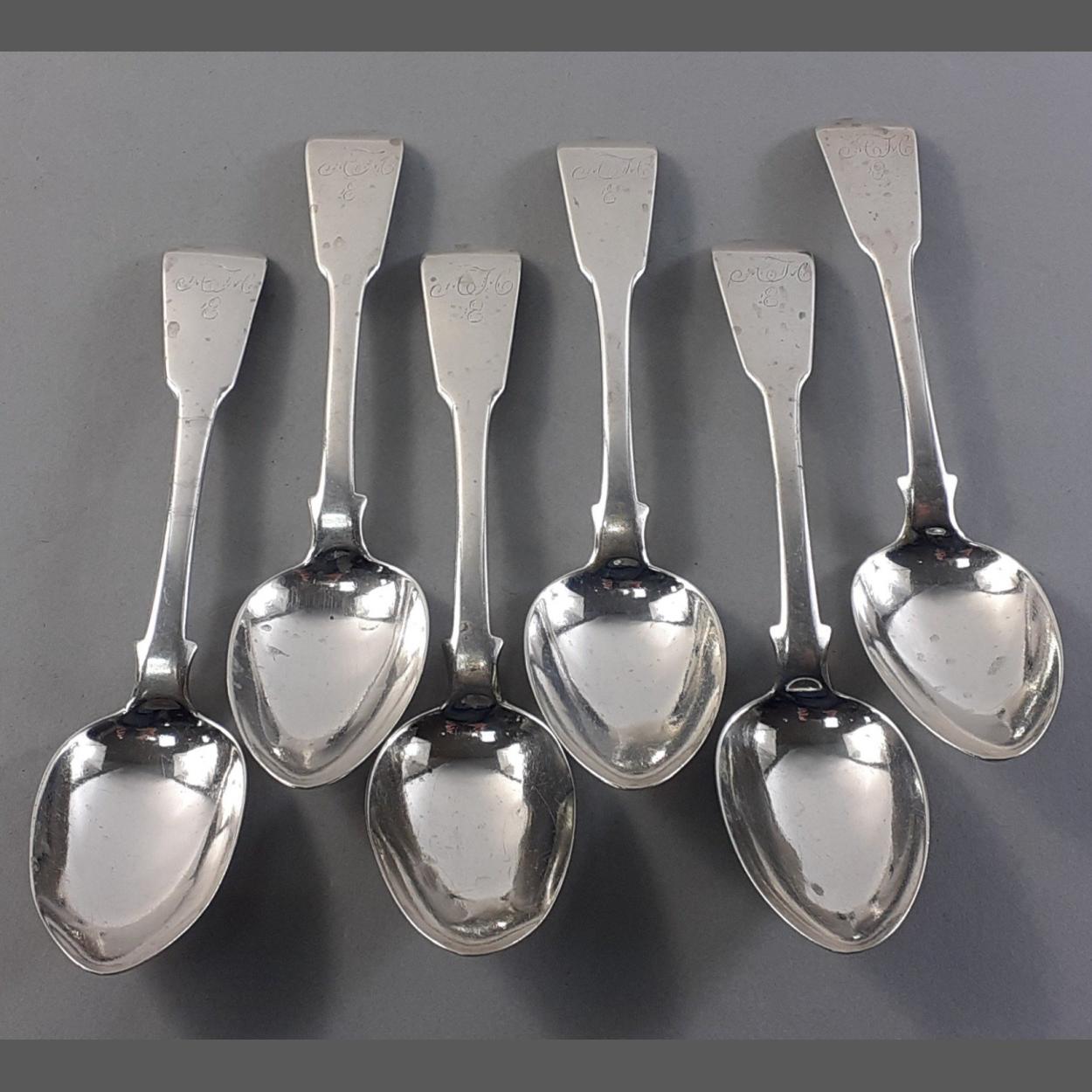 Six RARE ELGIN dessert spoons by WILLIAM FERGUSON each 17.5cm approx monogrammed on handle. Total weight 255g approx