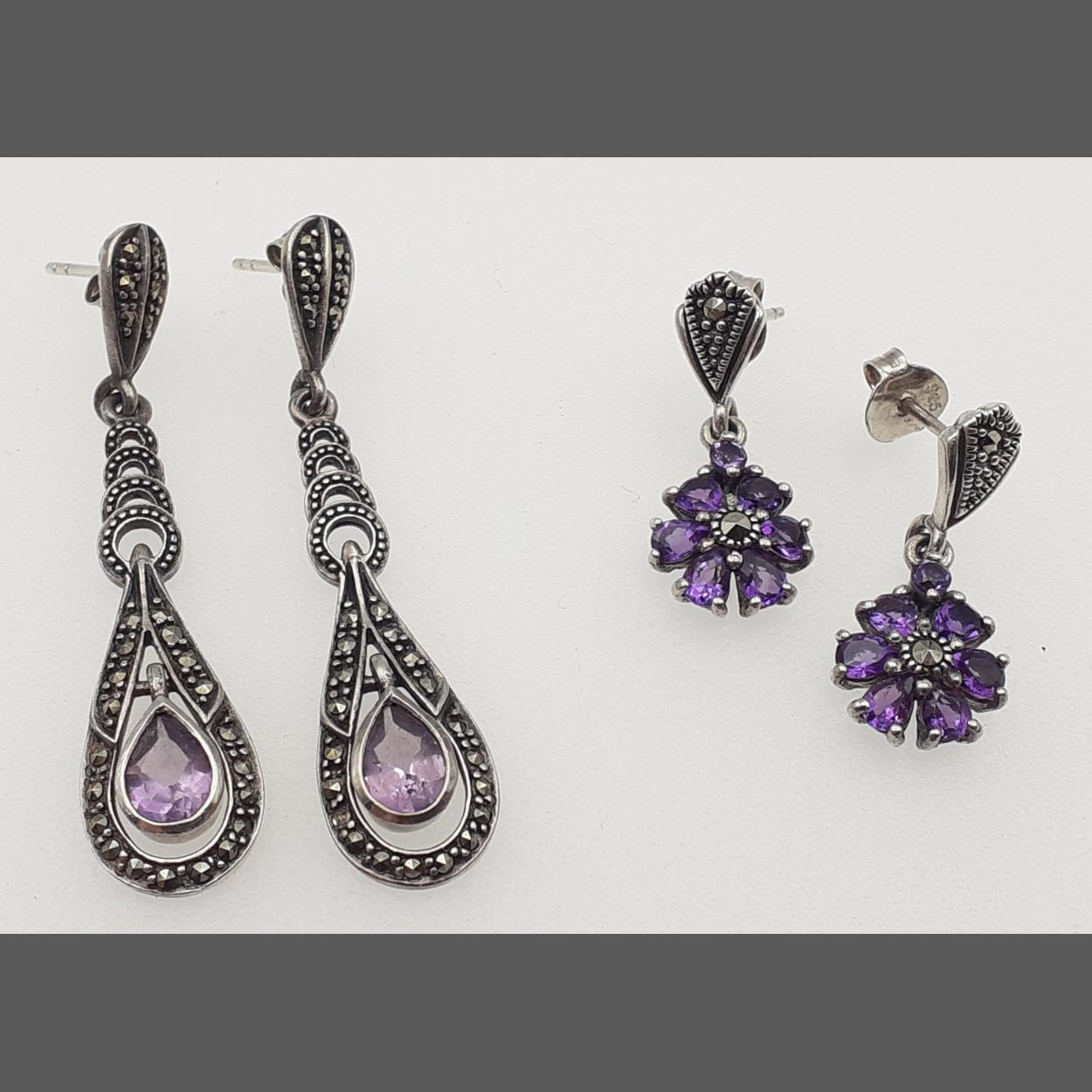 Two pairs of 925 stamped earrings with purple stones - gross weight 9.84g approx