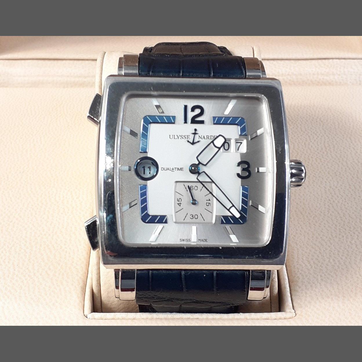 ULYSSE NARDIN Model 243-92 Quadrado Dual Time Watch In box with papers. Complete but not currently running.