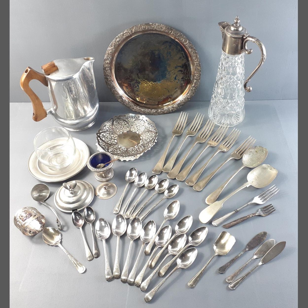 A great selection of plateware to include a claret jug, a PICOT ware coffee pot etc