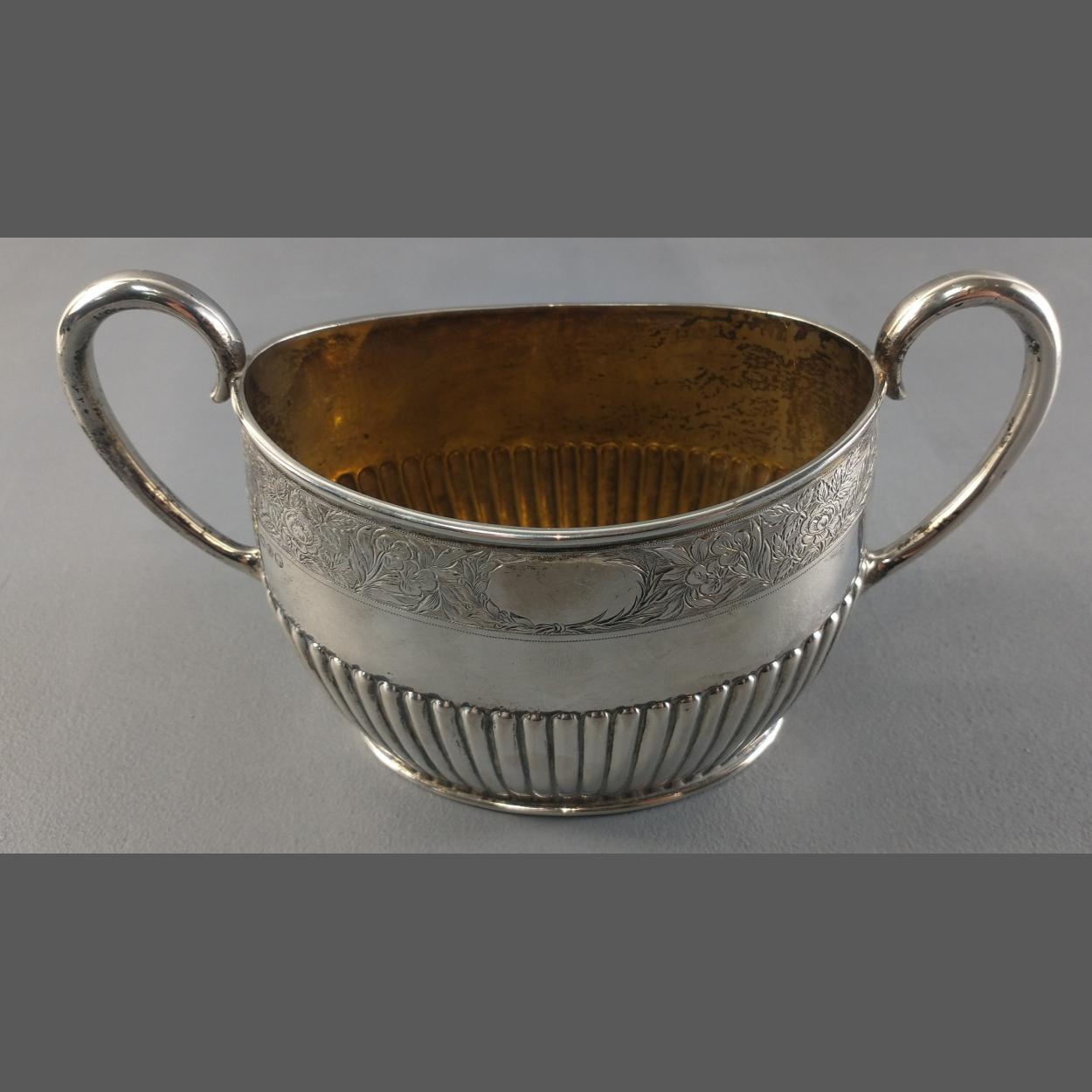STERLING Silver fully hallmarked (London 1889) double handled part fluted sugar bowl. 295g. Makers mark FE for Frederick Elkington. A lovely piece in great condition.