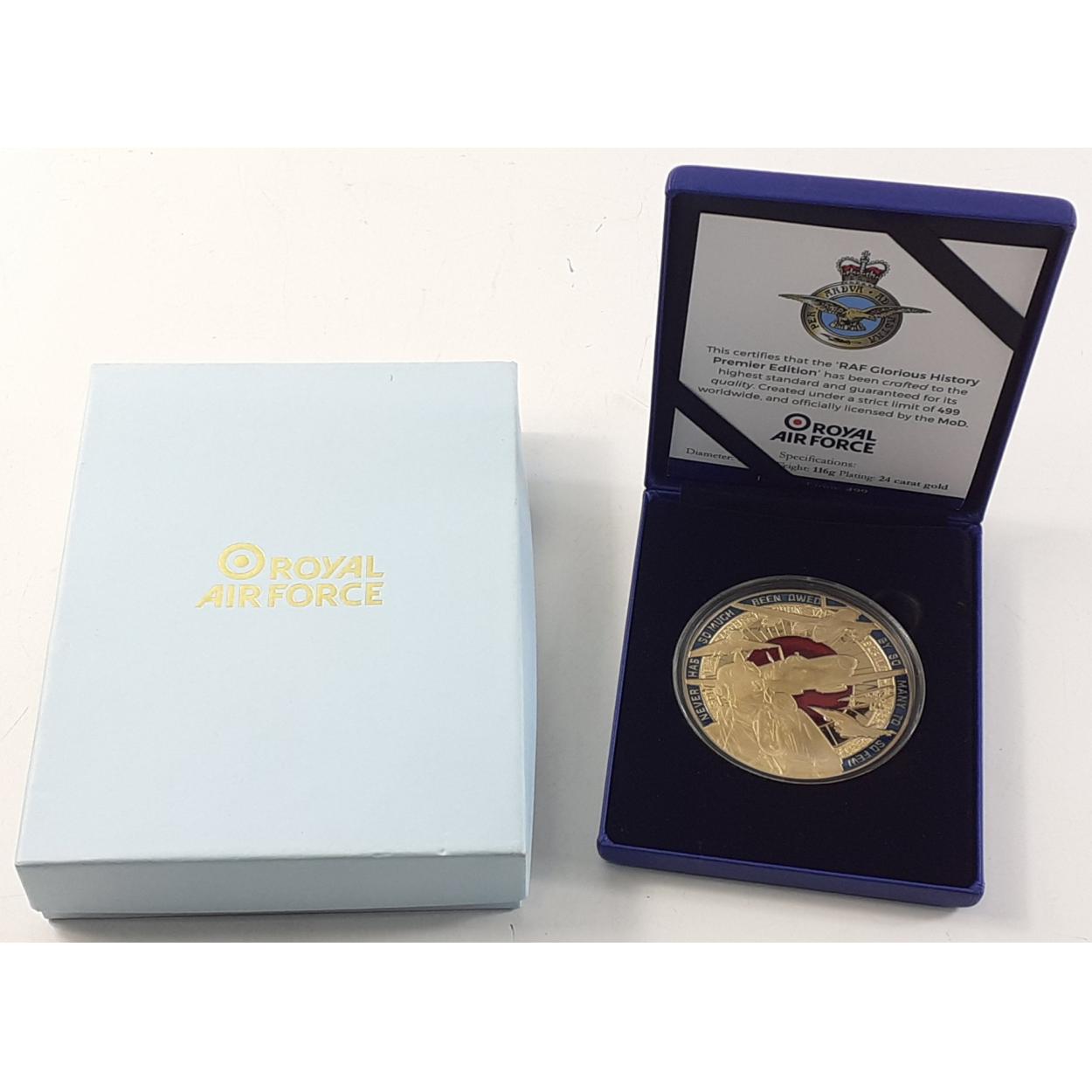 ROYAL AIR FORCE limited edition large 75mm 24 carat gold plated coin in presentation folder and box with leaflet.